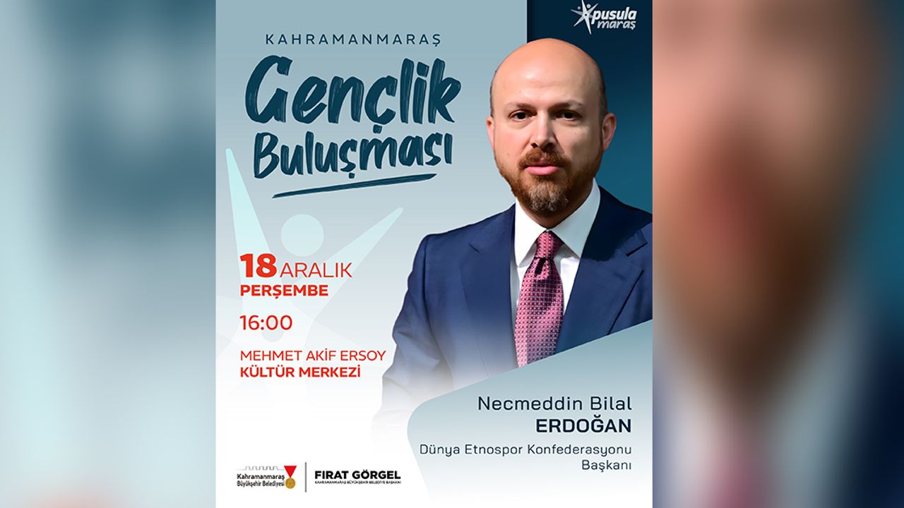 Kahramanmaraş Büyükşehir Belediyesi, genç dostu belediyecilik anlayışı doğrultusunda gençlere yönelik projelerini kararlılıkla sürdürüyor. Büyükşehir Belediye Başkanı Fırat Görgel öncülüğünde hayata geçirilen çalışmalar kapsamında, gençlerin sosyal, kültürel ve kişisel gelişimlerine katkı sunacak önemli bir programa daha imza atılıyor. Büyükşehir Belediyesinin gençlik markası Pusula Maraş çatısı altında düzenlenen etkinliklere bir yenisi daha eklenirken, bu kapsamda Kahramanmaraş Gençlik Buluşması programı gerçekleştirilecek. 18 Aralık Perşembe günü gerçekleştirilecek programa Dünya Etnospor Konfederasyonu Başkanı Necmeddin Bilal Erdoğan konuk olacak. Mehmet Akif Ersoy Kültür Merkezi’nde düzenlenecek program saat 16.00’da başlayacak. Büyükşehir Belediyesinden yapılan açıklamada, Kahramanmaraş Gençlik Buluşması’na tüm gençlerin davetli olduğu ifade edildi.